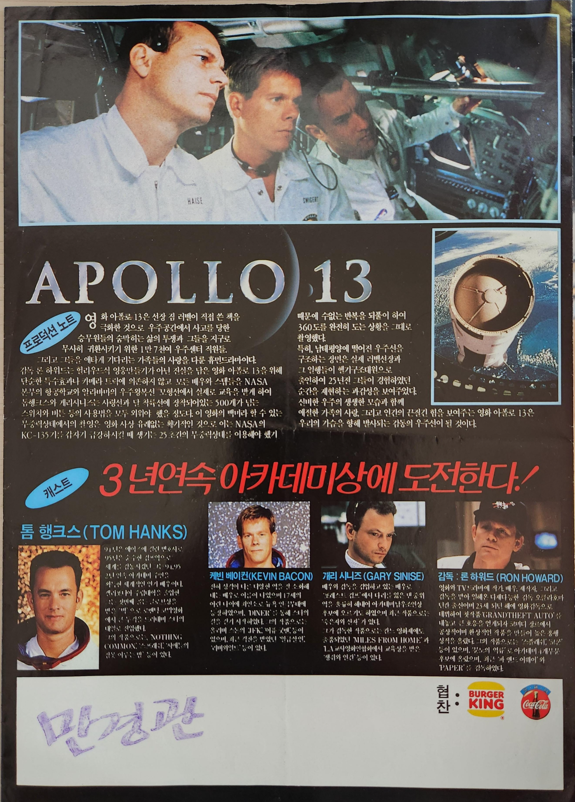 아폴로 13 실화를 다루었기에 무조건 보러 갔었던 것 같네요.