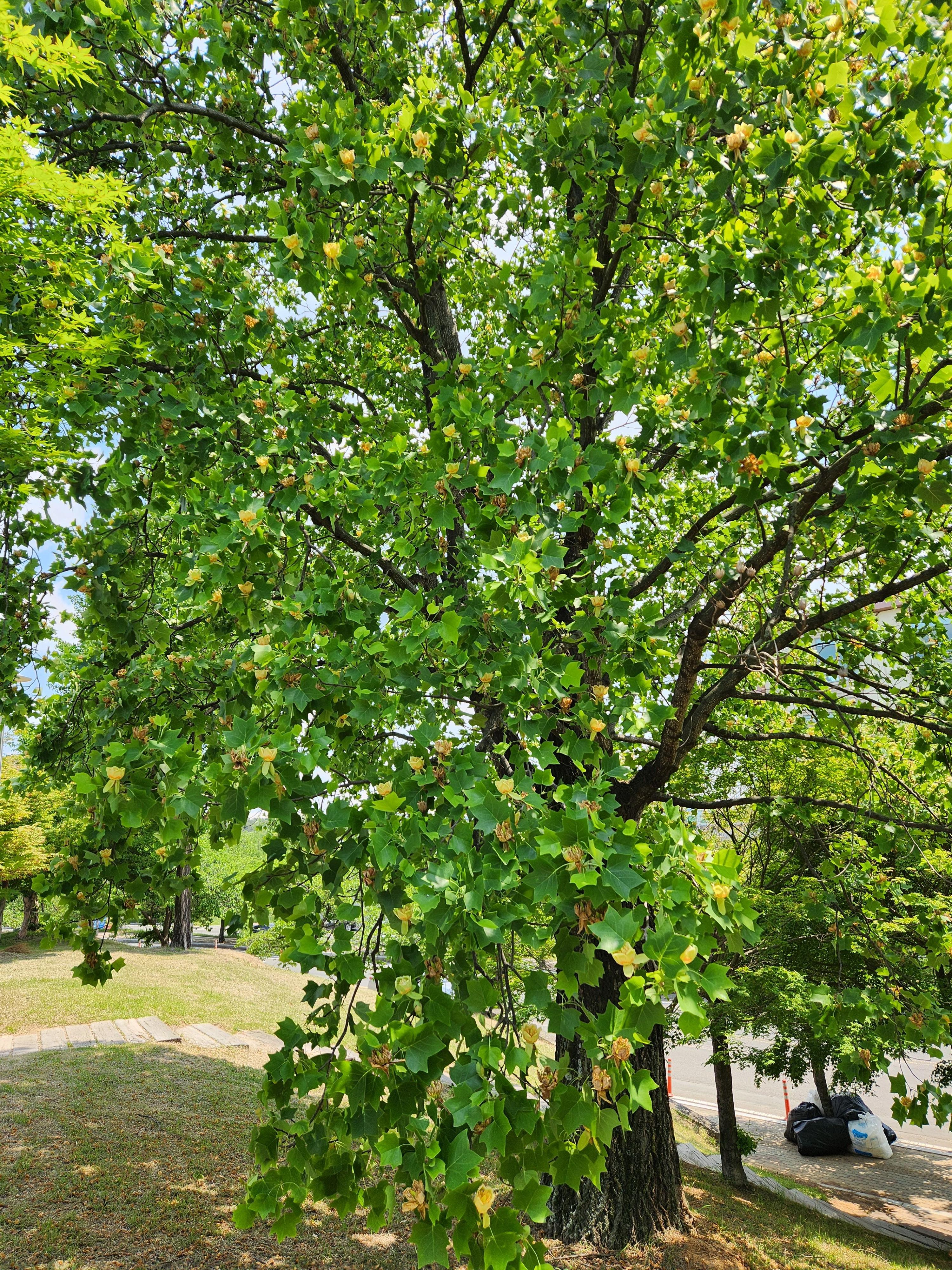 이름은 백합나무인데 ㅎㅎ 백합이 열리지않고 튤립이 피어있답니다.