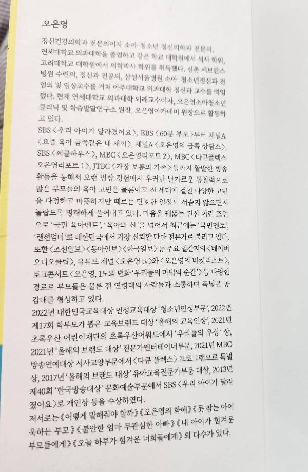 저도 박사님 책을 통해서 육아를 배우고 아이의 성장에 많은 도움을 받은 부모 중 하나랍니다.^^