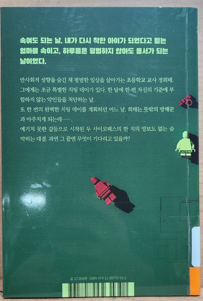 우리가 흔히 알듯이 사이코패스는 타인의 고통이나 감정에 공감하는 능력이 아예 없거나, 중증도의 지체 수준이다. 반사회적인 성격 장애인데 주인공 희태는 사실 사이코패스보단 비질란테 같은 느낌으로 다가왔다. 희태가 사패라고 하며 읽기엔 공감이 덜되었다. 반면 또 다른 사이코패스 동규는 달랐다. 그는 진정 사이코패스의 기질을 가지고 행동했다.